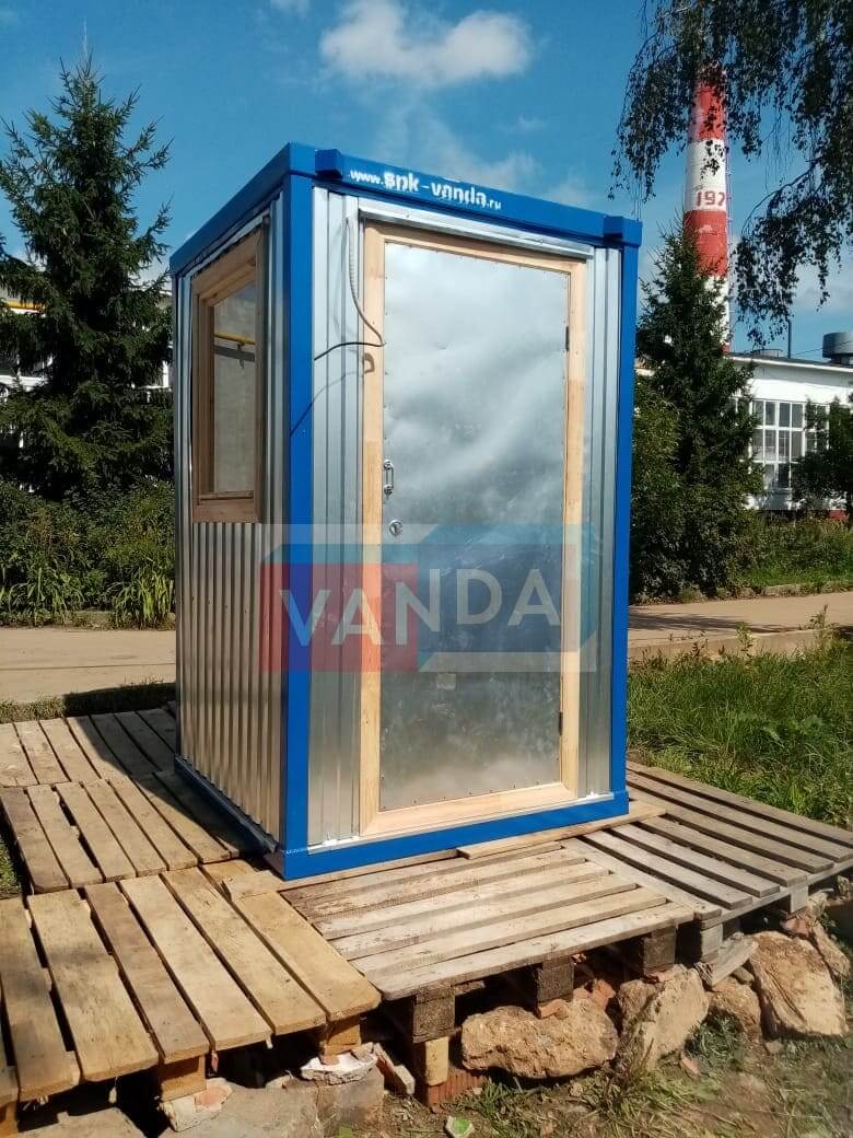 Мы сами изготавливаем пост охраны №1 (вариант 1), общей площадью 2.25 квадратных метров, имеющий наиболее доступную цену в нашем каталоге, и предлагающий широчайшие возможности для модернизаций. Простое решение с минимальными затратами.